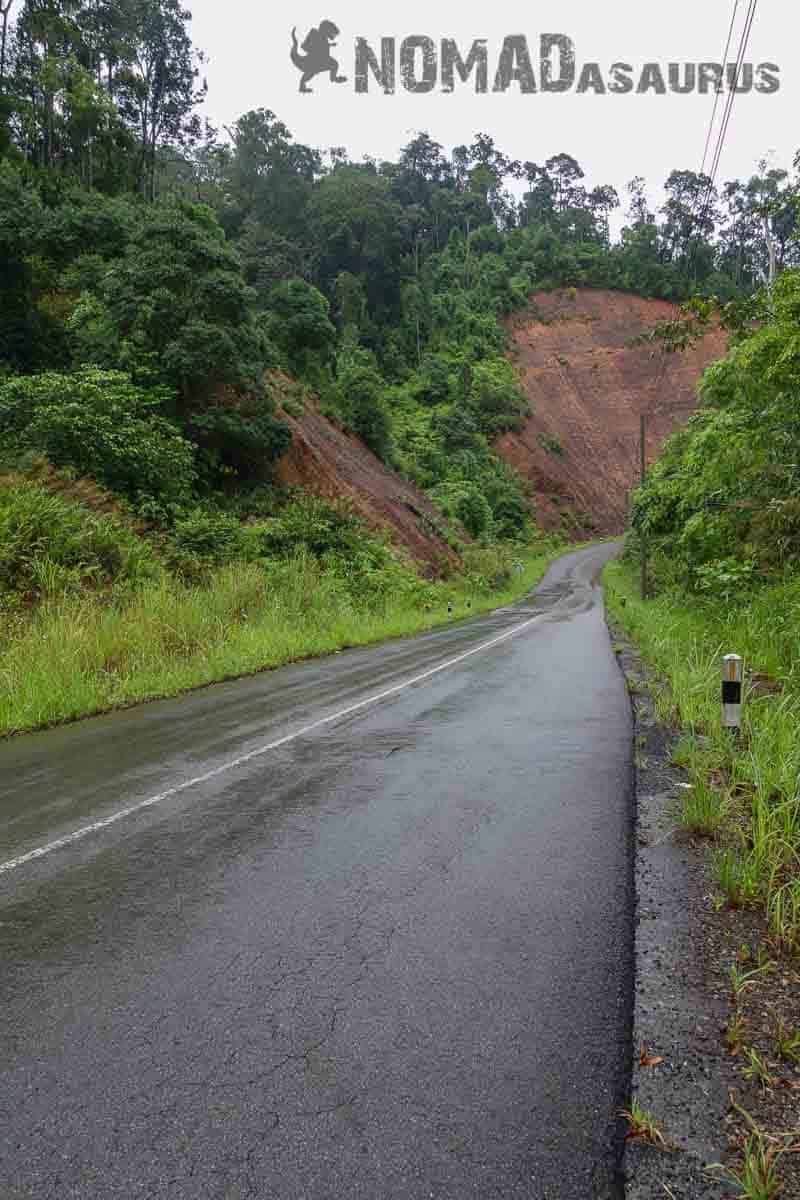 For 50km the ride is pretty mundane, with only the imposing mountains in the foreground hinting at what is to come. Soon enough you start to rise up into the mountains and we were reminded of the lush landscape of Northern Laos. Steep, windy roads and some of the greenest flora we have ever seen. We were lucky and had dense cloud coverage which added to the mysticism of the ride. Watch out for blind corners with large buses and trucks cutting corners at high speed. Be aware that there is very little traffic on this road besides large trucks and locals and the villages are few and far between, lacking in most amenities. Make sure your bike is in good working order and carry a tool kit and some spare parts if you don’t already. You do not want to break down in this section.
