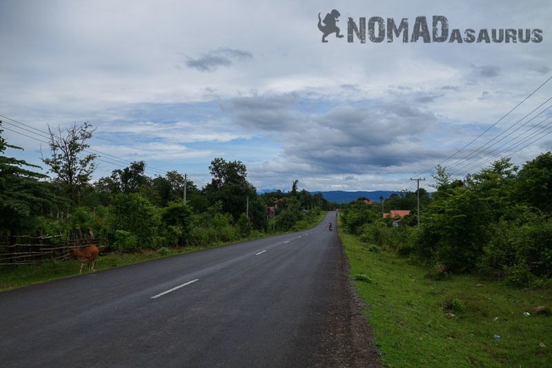 Leaving Pakse is quite busy and has a lot of roadworks going on. As soon as you start heading south this changes and the road is more-or-less straight the whole way to Si Phan Don (4000 Islands). To go to Don Det, which is the main backpacker island, turn off at the town of Nakasang. The most exciting part of the ride is riding your bike onto the small boat to transfer it to the island.