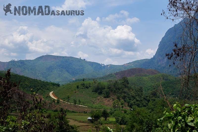 The road was in very good condition right through to Thakhek. Leaving the city was busy but that is to be expected. As soon as you reach Road 13 heading east (south), it quietens down. Very flat and straight with farmlands until you arrive in Pakkabing. From here you are offered views of the Mekong River and at times right over to Thailand. Limestone cliffs begin to rise from the ground and the foliage becomes denser. About 100km from Thakhek trucks start to come at you from the opposing direction. Mixed with speeding cars and buses overtaking from all sides you need to remain vigilant. Views are pleasant. The major attraction in Thakhek is the motorcycle loop and the caves close to town.