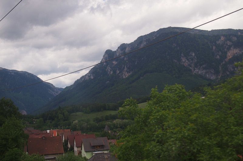 A week later I was leaving Ljubljana travelling to Vienna, this time on my own as Ginski had to leave a few days earlier. At first the scenery was quite normal, pretty and green of course but not spectacular (by now I’d been spoiled by the scenery of Lakes Bled and Bohinj) and then, there it was! That view out of the train window as we crossed into Austria. The villages tucked into the folds of the hills or placed wherever there was some flat farming land, the red roofs contrasting the bare escarpments and the many shades of green trees. The white of the snow on the peaks in the distance accentuated by the green of the forests in the foothills. It was a journey through a postcard, stunningly beautiful and vibrant. I was sad when it was all left behind as the wheels clattered on to Vienna, but then there was the beauty of that city to see. Ah, travel! So much to see, so much to do and whenever I can I will continue to travel overland, Europe by train.
